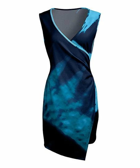 A soft fabric infused with stretch wraps from the surplice neckline to the tucked in waistline for an hourglass shape. The asymmetrical hemline includes a slit to ease every step you take.