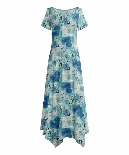 Lily | Blue & White Abstract Handkerchief Maxi Dress – Plus