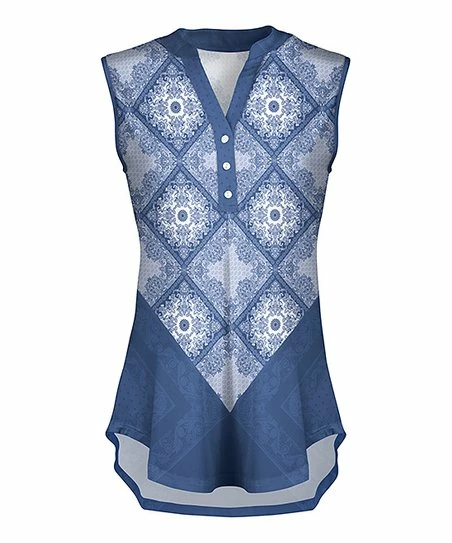Boasting preppy button details and a hi-low hem, this tunic lends a versatile flair to your warm-weather wardrobe.