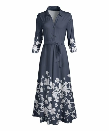 Bring poised style to your wardrobe with this button-front shirt dress made from stretch-infused material and featuring a waist tie.