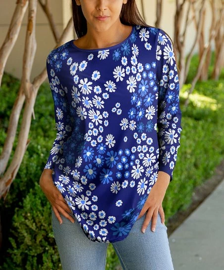 Keep it casual in this tunic with all-over floral print. Long sleeves and crewneck for comfortable wearing.