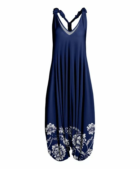 Get room to move inside this spacious v-neck racerback harem jumpsuit that’s made of a soft and supple fabric.