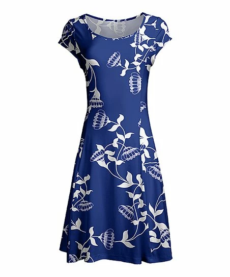 Crafted from silky, stretchy fabric, this cap-sleeve dress boasts a flattering A-line shape that sways over curves for a flattering look.