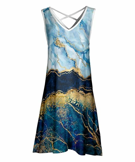 Celebrate sunny days with this sleeveless dress that has cross-strap details at the back and a vibrant print to catch the eye.