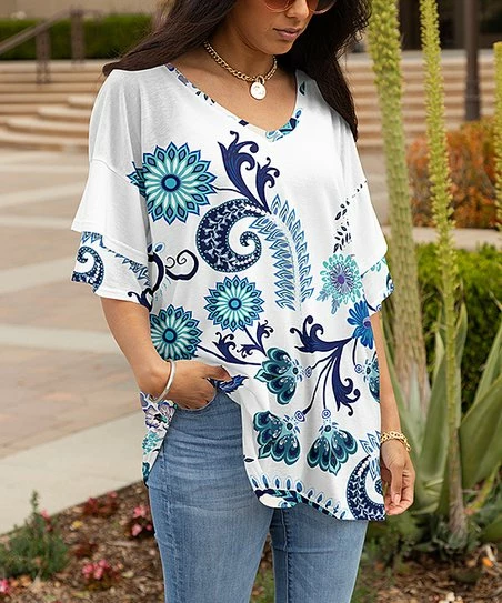 Breeze through the day with this tunic starring flowy ruffle sleeves and a lively print that will become a go-to piece in your casual closet.