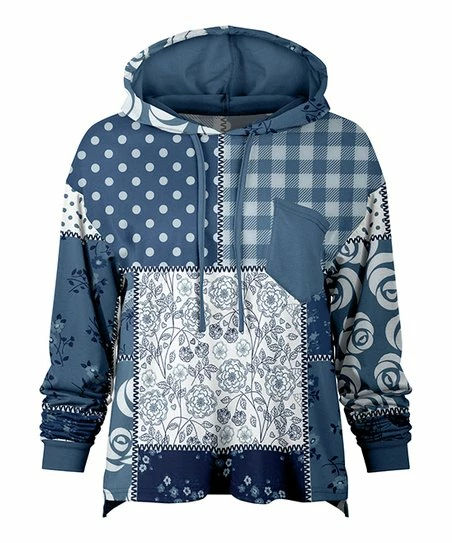 Lily | Blue & White Patchwork Chest-Pocket Hoodie – Women & Plus