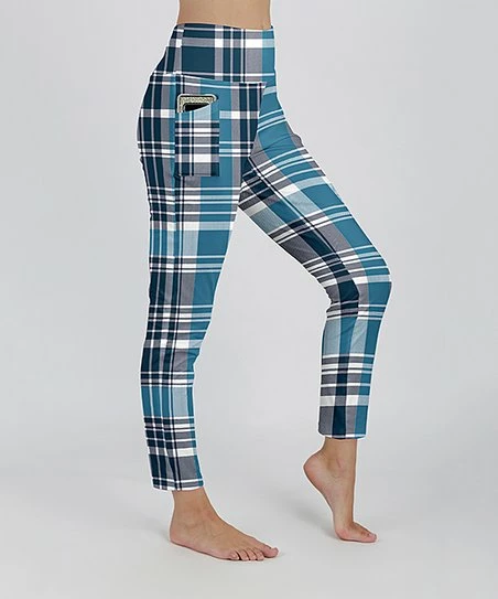 Warm up and workout in the stretchy comfort of these high-waist leggings finished with a vibrant plaid print for creative pairing with your go-to tops and tanks. A side pocket offers a secure spot for stashing essentials.