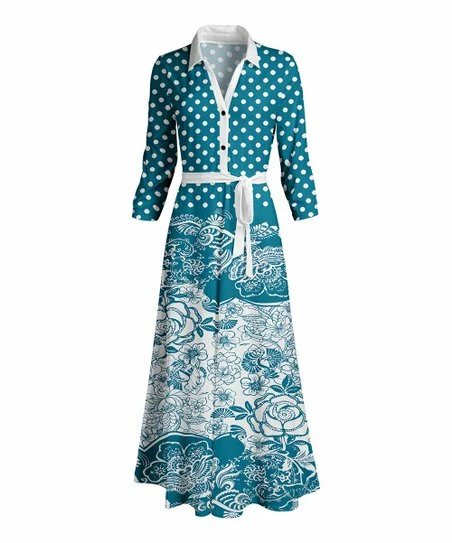 The sweet charm of this maxi dress begins with its polished collar and button front and ends with a flowy finish that puts a smile on your face.