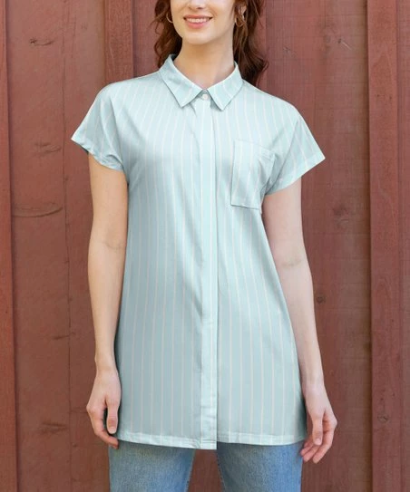 Lily | Blue & White Stripe Button-Up Tunic – Women & Plus