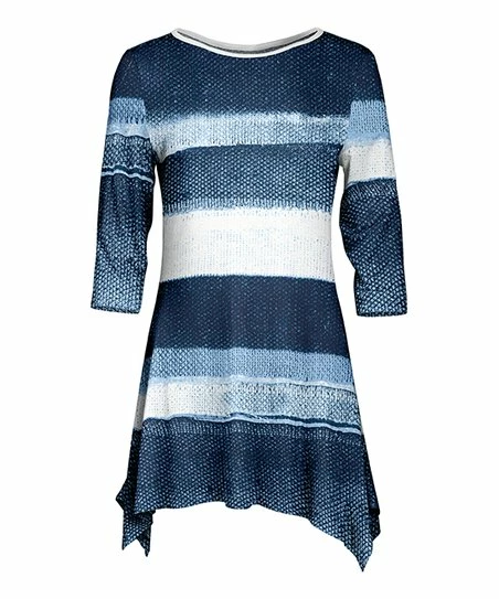 Create stylish, contemporary outfits with the bold print and sweeping sidetail of this tunic featuring a lightweight stretch-blend material for daylong comfort.