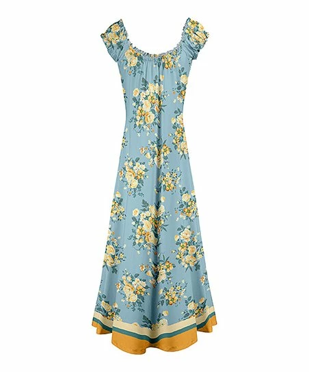 Step out in confidence when you slip into this darling maxi dress that features an elastic neckline, slightly puffed sleeves and an A-line silhouette.