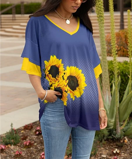 Everyday tunic with layered butterfly sleeves and a classic v-neckline. Enhanced with stretch for added comfort.