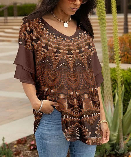 Lily | Brown Abstract Layered-Sleeve Tunic – Women