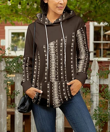 This bold print hoodie with a front pocket features a stretch-infused fabric and a drawstring.