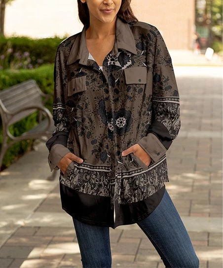 This soft flannel tunic features a button-up front and handy pockets. It works well alone or as a top for layered looks.