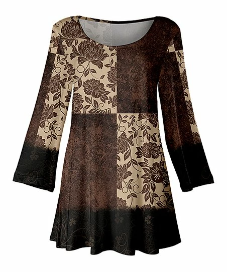 Add feminine flair to your casual look with this comfortable stretch-infused tunic sporting an eye-catching pattern that exudes personality.