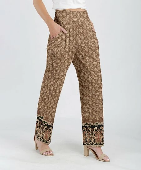 Straight-leg pants made with stretch-infused material and a wide-waistband. Built-in pockets for added functionality.