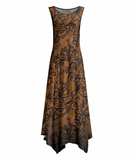 Embrace graceful style in this flowy handkerchief dress featuring comfy stretch-blend material and a cool sleeveless cut.