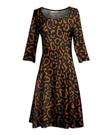 Make a statement in this swingy A-line dress designed with a boatneck, three-quarter sleeves and a vibrant print.