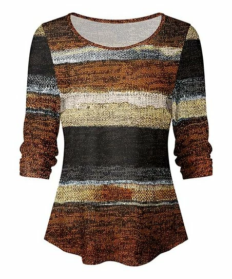 Elevate your any-day ensembles with the help of this elegant top that flaunts an eye-catching pattern finished with a flattering scoop neck design.