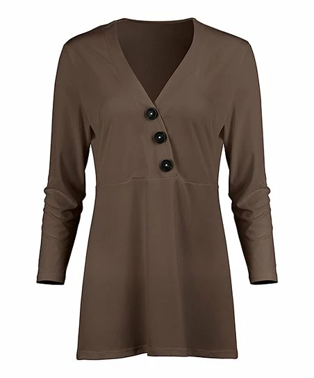 Reach for this attention-drawing tunic for a statement-making everyday look. Buttons along the v-neckline add a preppy touch and a hint of stretch in the fabric promises all-day comfort.