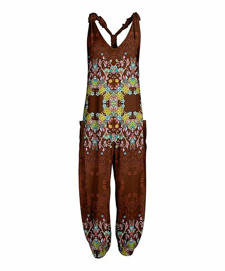 Whether you’re kicking back and lounging at home or out running errands, keep your fit breezy and easygoing with this printed jumpsuit featuring a harem cut.