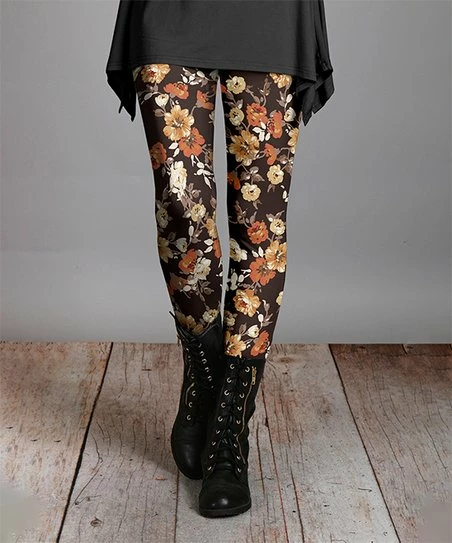 Sleek leggings feature flattering stretch and colorful print detail.