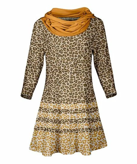 Lily | Brown & Orange Leopard Stripe Cowl Neck Three-Quarter Sleeve Tunic – Women