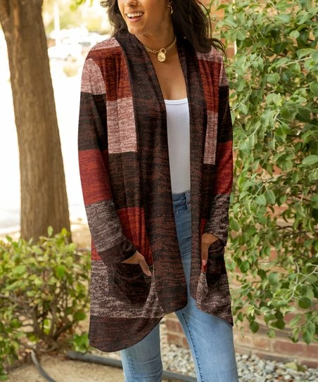 Feel the breeze in this open-front cardigan featuring a slightly curved hem and side pockets.