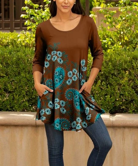 Show off casual-chic style in this tunic with a swing hem and floral and paisley patterns. Handy side pockets.