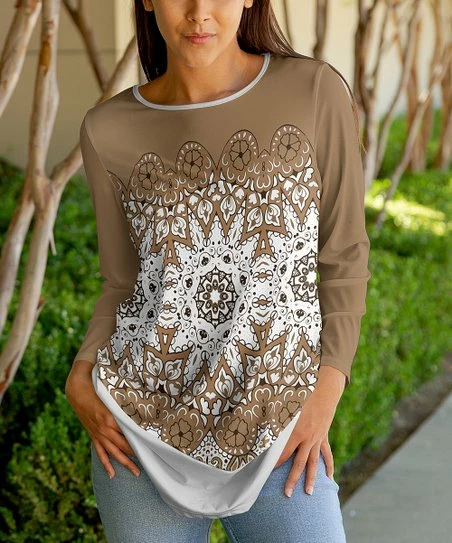 Casual long-sleeve tunic featuring a floral print and light, stretch-infused fabric.