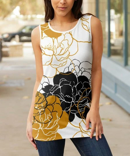 Add playful prints to sunny days with this sleeveless tunic featuring a round neckline and soft stretch-infused fabric.