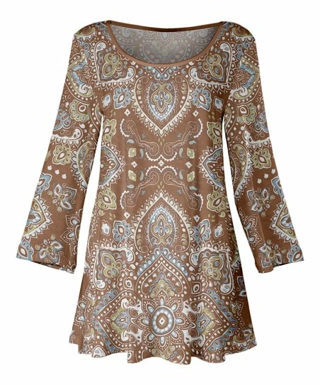 This boatneck tunic is made from a stretch-infused lightweight material with long sleeves and a flowy fit.