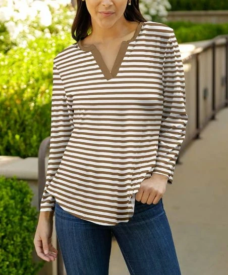 Printed top designed with three-quarter sleeves and a notch neckline.