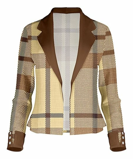 Refine your layered look in an instant by donning this dapper blazer boasting a plaid print, button accents on the cuffs and laid-back open design.
