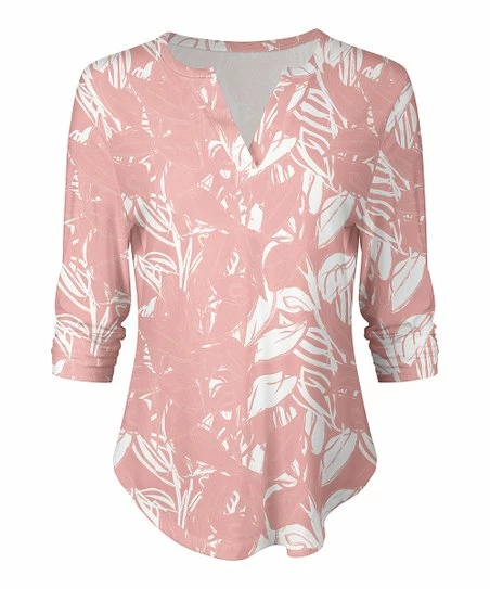 Great for weekend-wear and days spent shopping, this lovely top features a comfy stretch-enhanced material and on-trend notch neckline.