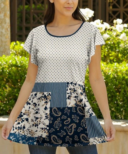 Short-sleeve tunic featuring lively prints and light, stretch-friendly fabric.