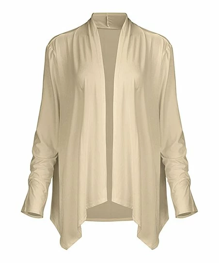 Top off your everyday ensembles with this open-front cardigan featuring stretchy fabric and a side-pointed hemline for comfortably stylish layered looks.