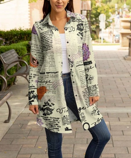 Go for a layered look in this longline shacket featuring a collar and buttoned front.