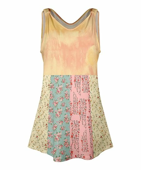 Lily | Cream & Pink Floral Patchwork V-Neck Sleeveless Tunic – Plus