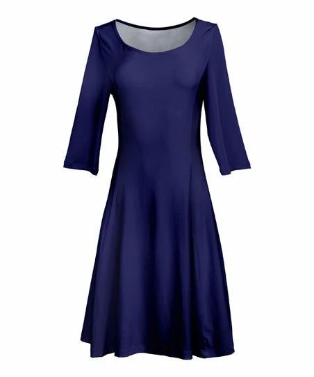 Lily | Dark Blue Boatneck Three-Quarter Sleeve Dress – Women & Plus