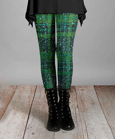 Lily | Dark Green Plaid Sparkle-Print Leggings – Women