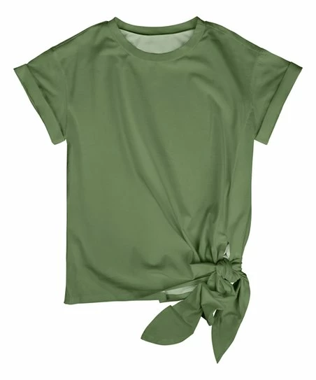 A side-knot hem lends trendy detail to this versatile tee made from a stretch-friendly blend.