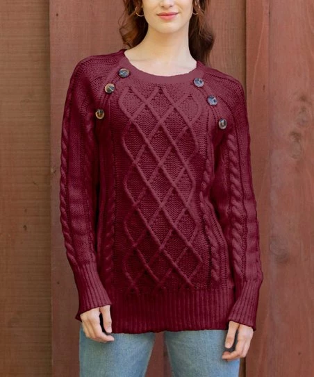 This sweater features a classic cable-knit design, stylish button accents and a timeless color that make it an easy addition to any outfit.