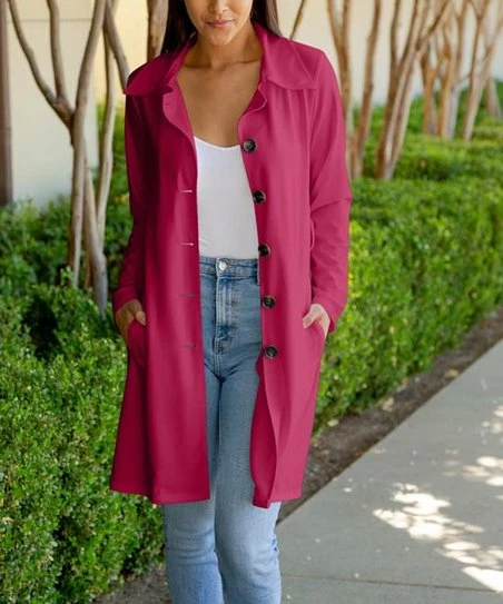 Lily | Fuchsia Pocket Collared Button-Front Longline Jacket – Plus
