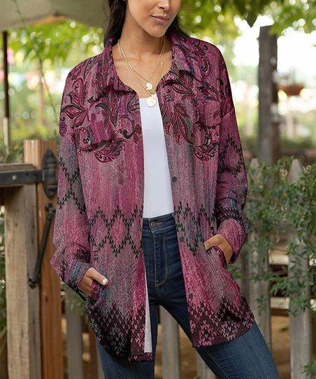 Perfect for transitional weather, this button-up shacket is made with stretch-infused material and features side pockets.