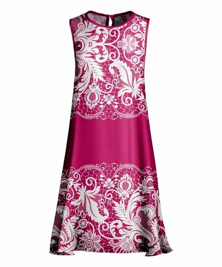 Slip into this sleeveless shift dress featuring a keyhole along the back neckline and a patterned design.