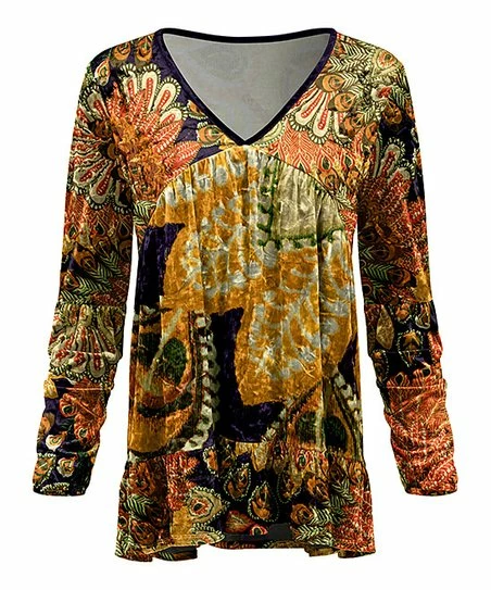 Bring breezy style to any occasion by donning this supersoft velvet tunic with a flattering fit and a plunging neckline.