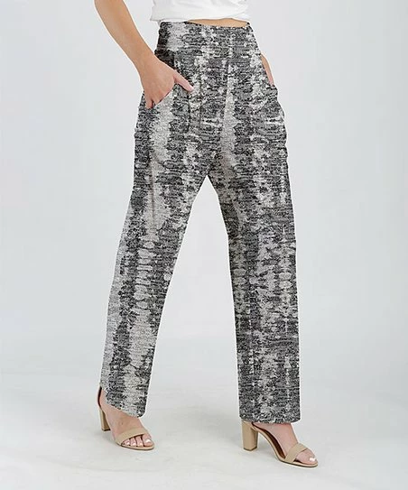 Step out in style with these high-waist pants featuring straight legs, side pockets and a bold print.