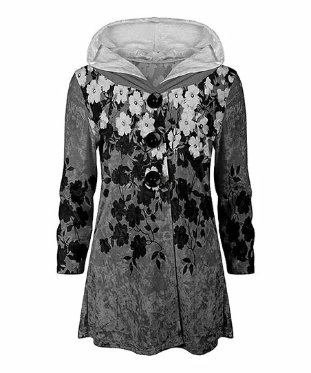 Elevate your layering collection with this extended hoodie that flaunts a velvety, flowy fit and unique print.